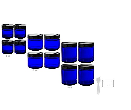 - JUVITUS Cobalt Blue Glass Bottle 12 piece Cobalt Blue Glass Jar Starter Kit Set is perfect for all your DIY, Essential Oils, Aromatherapy, Travel and Home needs