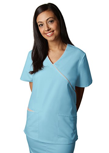 - Mock wrap crossover top with Solid crossover piping neckline with matching drawstring detail in the back