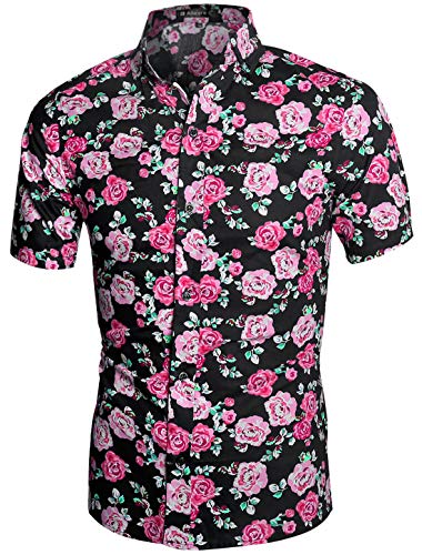 - Point Collar, Short Sleeves, Button Down.Slim Fit Floral Shirt
