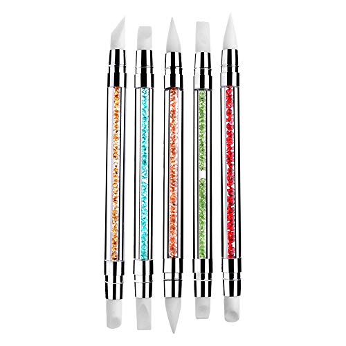 - 5Pcs nail art carving brushes, delicate design, silicone head, clear acrylic tube, decorated crystal rhinestone. Soft head, can be used to carve flower and make patterns on your nails. Comfortable and easy to handle. Great for fine nail art work, suitable for professional use and home use.