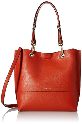 - Reversible tote in pebbled faux leather featuring flat top handles and removable pouch