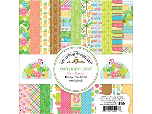 - Double sided cardstock, 2 sheets each of 12 designs that include: dots, plaids, wood grain, flowers, Palm trees, Flamingos, Pineapples, Tiki images, and more