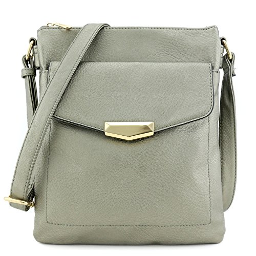 - Zipper closure. A flap pocket on front