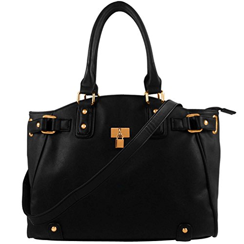 - Strap and rivets detailing with lock embellishment on the anterior of the bag along with key