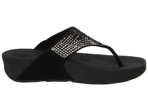 - Platform sandal featuring rhinestone-embellished strap and padded footbed