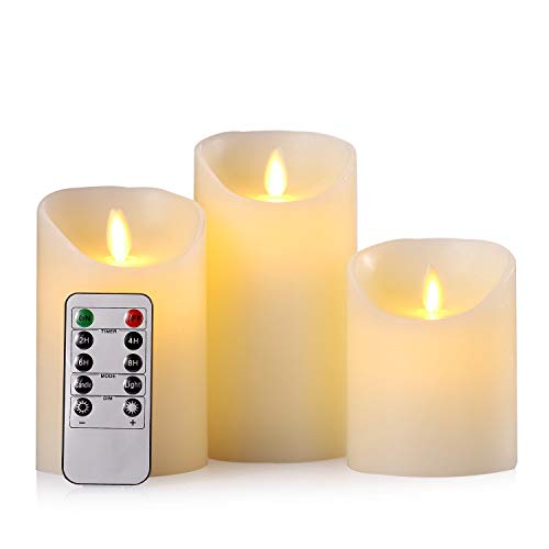- A COMPLETE SET OF FLAMELESS CANDLES: This value pack comes with 3 pieces beautiful flameless pillar candlesï¼ËDiameter 3.5"*Height 5"6"7" ), 1 remote control with 10 different keys, Timer feature allows you to set 2H | 4H | 6H | 8H, timed to automatically turn on and off. A super easy to follow operating manual. All the candles coming in an elegant ivory white color that matches any house. (Batteries are not included in this package.)