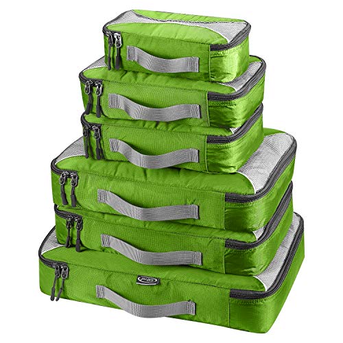 - 6 TRAVEL PACKING CUBES VALUE SET: 1 Large Cubes (20 x 12.6 x 3 inches),2 second large Cubes(15.8 x 10.2 x 3 inches),2 Medium Cubes (12.2 x 7.5 x 3 inches)and 1 small Cubes (10.6 x 5.5 x 3 inches )of same color. Durable High Quality Nylon Fabric that resists usual wear and tear, Quality zippers, see through mesh top.