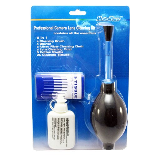 - Lens cleaning kit includes 1 removale cleaning brush, 1 air blower, 1 bottle of 40ml lens cleaning fluid, 1 15x15cm micro fiber cleaning cloth, 5 cotton swabs and 25 lens cleaning tissues