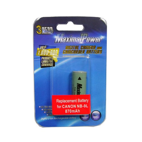 - Replacement for the original Canon NB-9L battery, 3.7V , 870mAh