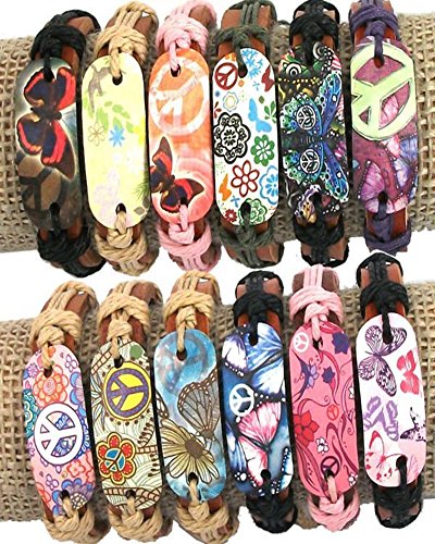 - Mix Style Genuine Leather Bracelet Romantic Peace Butterfly Flower Prints