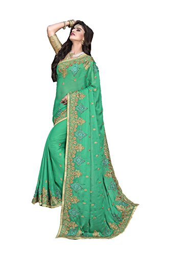 - Saree Details:- Color : Green, Fabric : chiffon, Work : Embroidery, Lace, Stone