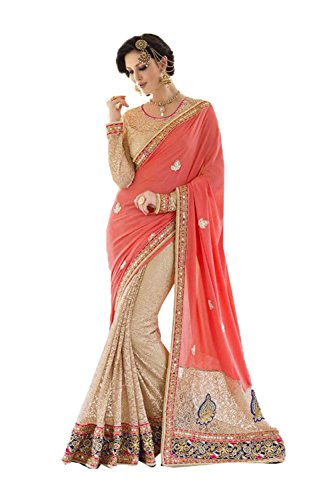 - Saree Details:- Color : Pink, Fabric : Georgette, Work : Lace,Embroidery