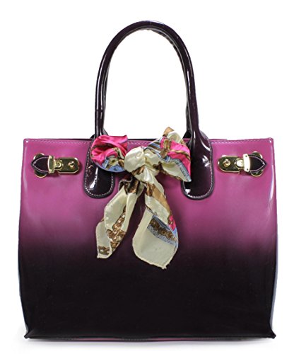 - Synthetic patent leather with fabric lining. Top zipper closure.