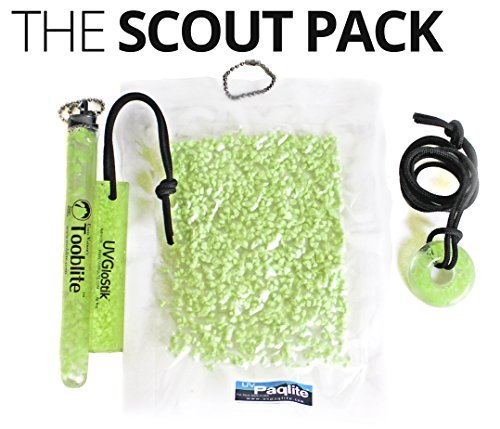 - Reusable glow sticks attach to items you want to find in the dark