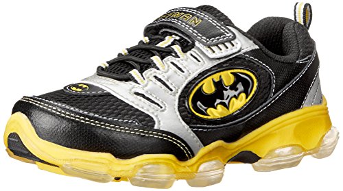 - Lace-up sneaker featuring Batman graphic on sides and adjustable hook-and-loop strap