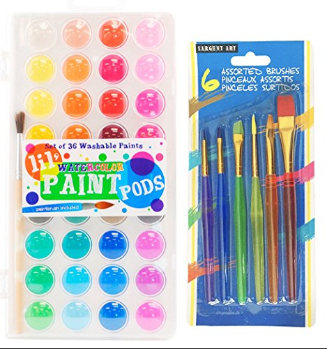 - Art Kit Includes: Watercolor Paint Kit, International Arrivals Washable Watercolor Paint Kit with 36 Beautiful Vibrant Colors, Cover Doubles as a Palette Plus 6 Rainbow Taklon Brushes - Awesome Art Set for All Ages