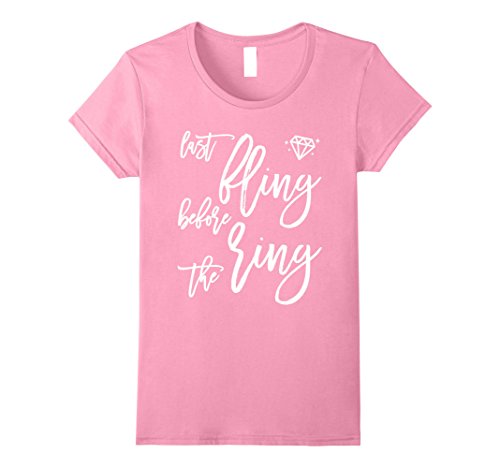 - Bachelorette party shirts with white diamond and Last Fling Before the Ring script text. These shirts are perfect for Bachelorette party or Bridal shower as a gift or just a fun shirt for any other occasion.